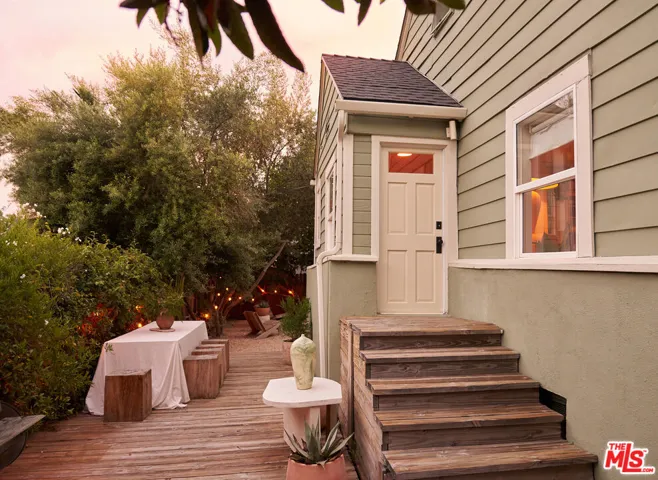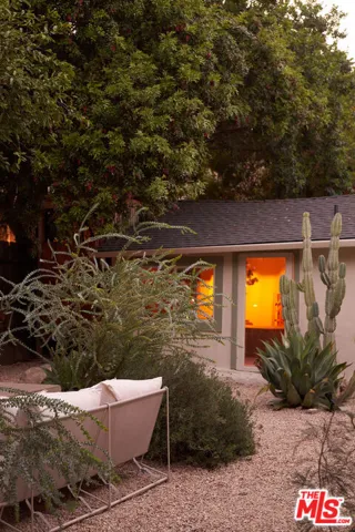 Located on a corner lot and set behind reclaimed wood fencing wrapped in ivy and delicate white jasmine, this dreamy Highland Park bungalow feels like a hidden garden retreat in the heart of the city. Completely private and overflowing with charm, the property unfolds through a series of beautifully layered outdoor spaces where worn wood decking, aged hardscape, and pea gravel pathways create an atmosphere that feels both grounded and transportive. Thoughtfully designed with a rich mix of California-native and drought-tolerant landscaping, the grounds are filled with California buckwheat, sculptural San Pedro cactus, fragrant lavender and rosemary, cowboy sagebrush, eucalyptus, and flowering accents that soften every edge. Mature olive, guava, kumquat, and pepper trees add texture, shade, and a sense of abundance, creating an outdoor setting that feels lush, whimsical, and deeply loved. Set on approximately 4600 SF of grounds, the property feels grand, designed to be lived inside just as much as outside. There are inviting spaces to dine al fresco, gather with friends around the fire pit, or simply enjoy the beauty of the surroundings. Custom seating finished with tile from Orca Living adds another thoughtful design moment, while the entire landscape feels curated yet effortless, blending seamlessly with the warmth and soul of the home itself. Inside, the main residence is a sun filled two bedroom, one bath California bungalow with large entry porch to enjoy your morning tea/coffee and an open, easy flow with strong connection to the outdoors. Windows cast beautiful light throughout the interiors while the Portola-painted walls, hardwood-style flooring, designer Cle tile in bath, and patinated fixtures give the home a layered, soulful character. Enjoy cooking in your darling kitchen with butcher block countertops, farm sink with large window overlooking the gardens and built-in dishwasher. Every room has windows showcasing the beautiful outside grounds. The detached garage has been converted into a flexible bonus space that functions as a third bedroom, studio, or workshop. Complete with pitched ceilings, large window, a second powder bathroom, laundry, and soft lighting, it offers the same charm and intentionality found in the main house. The property has been lovingly cared for with a new roof, tankless water heater, recessed lighting, updated sewer, 200amp electrical panel, and central NEST hvac system while the large driveway provides onsite parking for two cars. Located in the heart of Highland Park just three blocks from Figueroa, The Goldline Metro, and 110 fwy, this home places you moments from the neighborhood’s beloved boutiques, restaurants, cafes, nightlife, museums, and art galleries. It is a rare offering that feels tucked away and peaceful, yet completely connected to the energy and culture that make Highland Park so special.