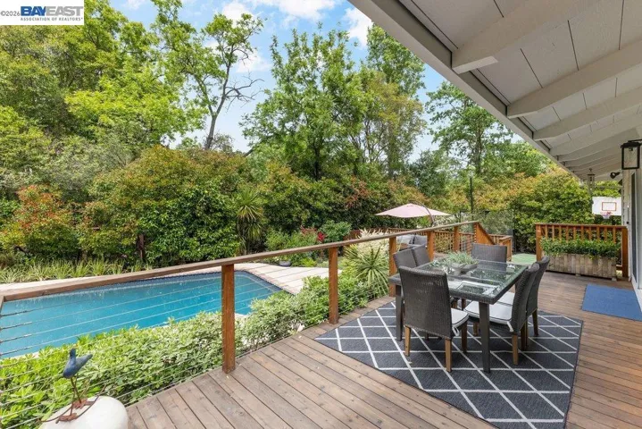 Welcome to one of Westside Alamo’s most charming completely remodeled single-story properties — a true oasis where privacy, beauty, and effortless living come together in perfect harmony. Boasting 4 bedrooms and 2.5 bathrooms and 2593 sq ft situated on a sprawling .46 acre flat lot. Tucked behind a private tree-lined drive, this spectacular property sets the stage from the moment you arrive. Inside, soaring open beam ceilings and wide plank oak hardwood floors create a warm, sophisticated atmosphere. The chef’s kitchen is a showstopper — Sub-Zero refrigerator, Décor double ovens, 6-burner cooktop, large island with veggie sink, glass-front cabinets, and granite countertops. The kitchen opens up to the private and picturesque backyard. A walk-in wet bar with wine fridge, two fireplaces, and expansive living and dining rooms make this home an entertainer’s dream. Step outside to a resort-style backyard unlike any other — sparkling newly remodeled pebble finish pool and spa, sport court, large patio, raised decking, separate side yard seating perfect to enjoy your morning coffee, and mature foliage that creates a Zen-like park setting. Additional features include new luxurious primary bathroom with quartz counters, soaking tub, and custom mirrors, remodeled hall bath, oversized finished garage, spacious laundry room with cabinetry, and moments from the Iron Horse Trail. Quiet. Serene. Peaceful. This is the one you’ve been waiting for.