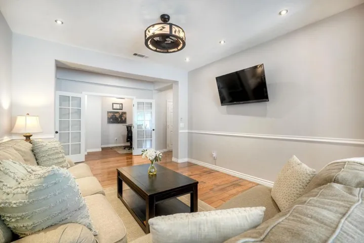 Welcome to this beautifully upgraded single-story home, ideally located on a quiet cul-de-sac and set on an expansive 10,000 sq ft lot. A protected nature preserve is directly across the street, offering a rare blend of privacy and tranquility. This 4 bedroom, 2.5 bath residence has been thoughtfully enhanced to meet today’s modern lifestyle. A permitted office addition and powder room create flexible living options perfect for remote work, guests, or multigenerational needs. At the heart of the home, the remodeled kitchen impresses with a large center island, quartz countertops, custom cabinetry, and GE appliances, opening seamlessly to the main living areas. Wood and Italian tile flooring, newer interior paint, and blinds add warmth and style throughout. Sunlight fills every room thanks to the contractor-installed new windows (not retrofit replacements), while the updated fireplace anchors the great room with comfort and character. Built-in surround sound enhances everyday living and entertaining. Step outside to your private entertainer’s retreat. An outdoor oasis complete with a fully equipped outdoor kitchen and bar, covered patio, TV, surround sound, and upgraded lighting, perfect for hosting friends or relaxing year-round. Low maintenance artificial turf in both the front and backyard keeps the home beautiful with minimal upkeep, while mature fruit trees add charm and functionality. Additional highlights include a paid-off solar system, low HOA, and a location that offers peace, space, and long term value. This is single-story living at its finest.