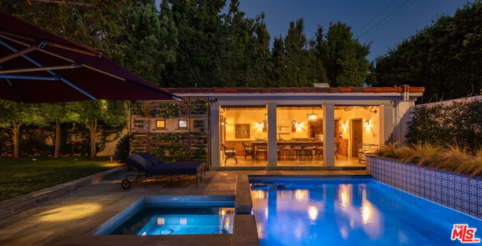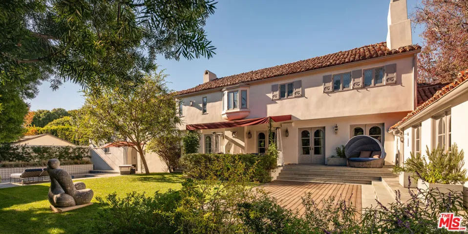 Steeped in Hollywood history and reimagined for contemporary living, this extraordinary 1928 estate was originally built by renowned Spanish Revival and Monterey Colonial architect Roy Seldon Price for Charlie Chaplin’s second wife, with interiors crafted by legendary set designer Harold Grieve. Today, the residence stands fully remodeled and thoughtfully upgraded, preserving its storied past while embracing the finest modern amenities. Tall, mature hedges encircle the property, ensuring complete privacy the moment you enter through the double-gated drive. A long motor court leads to the main entry, framed by a grassy lawn, fruit trees, and a charming turtle pond beside a dedicated dog run.Inside, the home unfolds through a striking foyer appointed with Moroccan tiles, grand archways, Spanish lighting, and bespoke French doors. This central hall opens to an elegant sequence of entertaining rooms, all bathed in natural light and designed with effortless indoor-outdoor flow. The formal living room features a dramatic stone fireplace and extends to both the expansive backyard and the front garden courtyard. The room also features a built-in bar and lounge area, along with a library/office with garden access. A vintage-style powder room and vanity complete the formal wing. At the heart of the home lies the chef’s kitchen, featuring Viking appliances, a walk-in pantry, generous central island, and breakfast bar. Set between the formal dining room and inviting family room showcasing coffered ceilings, bespoke wall treatments, stone fireplace, and a built-in banquette dining area – ideal for gatherings of any scale. Below, an incredible wine cellar and multiple storage rooms offer utility and temperature-controlled preservation.Upstairs, five bedrooms occupy the main level, three of which open to a wraparound balcony overlooking the gardens. The primary suite is a sanctuary unto itself, featuring a stone fireplace in the private sitting room, dual bathrooms with a soaking tub, generous walk-in closet, and private balcony with direct access to the pool terrace below. The family room opens through French doors to a covered terrace with views of the pool, spa, cold plunge, and a full outdoor kitchen and dining pavilion beneath iconic Beverly Hills palms. The backyard also boasts a spacious lawn with a detached one bedroom/bathroom pool house. A completely separate wing is accessed through the gated side driveway and two-car garage – perfect for guests or staff. This private suite includes a secondary office with its own bathroom, a fully outfitted mirrored gym, a dedicated laundry area, and two bedrooms with a shared bath and direct access to the backyard. An additional large laundry room sits adjacent for convenience.A rare, meticulously maintained estate in the Beverly Hills Flats – steps from the area’s premier shopping, dining, and nightlife.