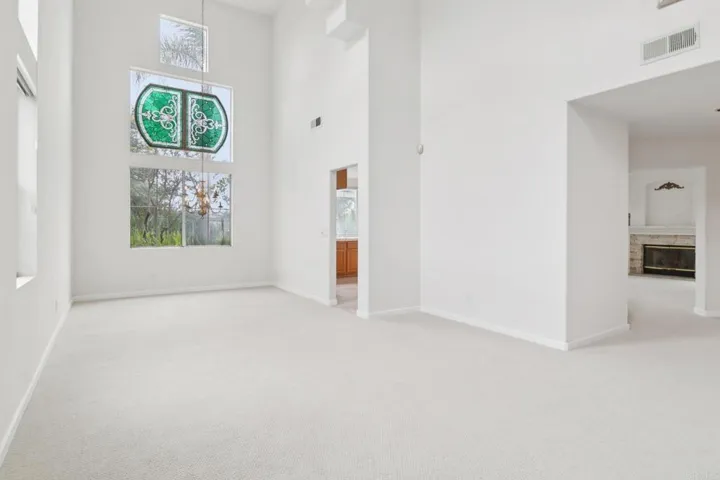 This beautiful home is located in the prestigious Fairways gated community in the highly desirable La Costa area of Carlsbad. Perfectly positioned, it offers incredible golf course views from the kitchen, the backyard, and most impressively from the private balcony off the Master Suite on the second level. The main floor features a convenient bedroom and full bathroom, ideal for guests or multigenerational living. The thoughtfully designed layout includes a formal dining and living area, plus a separate living room with a cozy fireplace situated right next to the kitchen—perfect for both everyday living and entertaining. Upstairs, the spacious Master Suite is a true retreat, complete with its own fireplace, a generous walk-in closet, and a private balcony where you can savor your morning coffee while enjoying sweeping golf course vistas. Additional highlights include soaring high ceilings that flood the home with abundant natural light, a 3-car garage with an attached laundry room, and a beautifully maintained backyard featuring a built-in BBQ and mature landscaping—creating the perfect outdoor space to relax while overlooking the fairways. Centrally located in La Costa with easy access to world-class shopping, dining, golf, and top-rated schools, this home delivers an exceptional lifestyle in one of North County’s most sought-after communities