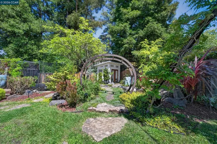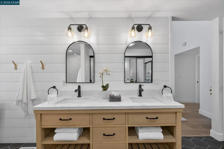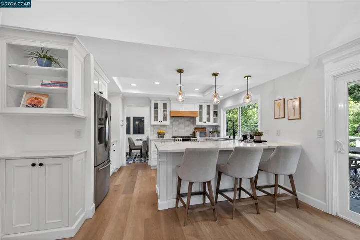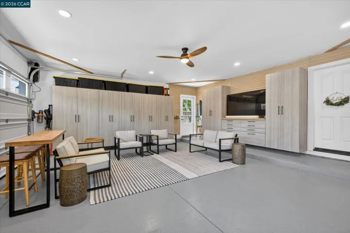 Nestled at the end of a quiet cul-de-sac on a rare flat, nearly ¼-acre private lot, this meticulously updated single story modern farmhouse delivers effortless California living with thoughtful luxury throughout. Step inside to discover an inviting open-concept layout featuring a spacious great room anchored by dramatic vaulted ceilings in both the family and living rooms. Adjacent is a separate formal dining room that overlooks the serene backyard, ideal for hosting memorable gatherings. The chef’s kitchen has been tastefully updated with crisp white cabinets, elegant quartz countertops, and flows seamlessly into the great room. A true highlight is the expansive primary suite, complete with its own vaulted ceilings and a luxurious spa-like retreat. The primary bath features a double vanity, a large walk-in shower with multiple shower heads, and high-end finishes that make every day feel like a resort escape. A secondary hall bath offers a spacious tub-shower combination for added convenience. No detail has been missed inside or out. High-end luxury wide-plank vinyl flooring runs throughout the home, while a dedicated outdoor office provides a peaceful workspace surrounded by nature—perfect for work-from-home professionals. Energy independence is built in with a brand-new (2025) owned 6.4 kW solar system and Tesla Powerwall 3. In normal weather, the home runs self-powered, shielding you from rolling blackouts and keeping utility costs low. A Tesla Wall Connector is conveniently mounted on the exterior side of the garage. The garage has been fully upgraded with insulation, durable epoxy flooring, custom cabinetry, and air conditioning—making it as functional and comfortable as the rest of the home. The expansive, private backyard has plenty of room to play and entertain. There’s even a natural rock waterfall that runs through the back portion of the yard. Nearly a dozen mature fruit trees (Apple, Fig, Lemon, Pomegranate, and more). Enjoy the peace and privacy of this oversized, flat yard while being just blocks from highly rated Greenbrook Elementary and enjoying an excellent commuter location with easy access to highways, BART, and vibrant downtown Danville. A rare opportunity not to be missed.