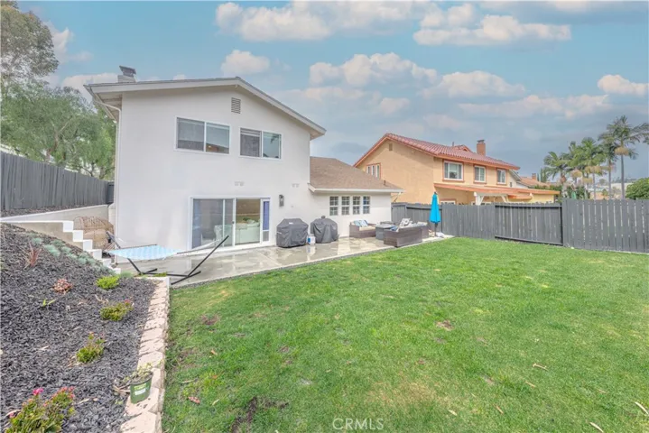 Nestled within a serene cul-de-sac on a desirable corner lot, this captivating home in the picturesque foothills of Mission Viejo offers a blend of modern elegance and comfortable living. With 4 spacious bedrooms and 3 beautifully appointed bathrooms, this residence boasts an impressive 2,290 square feet of thoughtfully designed living space. At the heart of the home lies the stunning entertainer’s kitchen, a true chef’s delight. It features a generous island that invites friends and family to gather, along with an abundance of counter and cupboard space adorned with exquisite gold accent finishes that add a touch of sophistication. The kitchen effortlessly transitions into the warm and inviting family room, which is complete with a cozy fireplace, creating a perfect atmosphere for relaxation and family gatherings. Convenience is key with a thoughtfully designed downstairs bedroom and bathroom, ideal for guests or family members looking for privacy. The home is characterized by soaring ceilings that enhance the spacious feel and a step-up living room that adds a touch of architectural charm. Retreat to the tranquil primary bedroom, a spacious sanctuary that features stylish barn doors leading to an elegant ensuite bathroom. This luxurious space showcases modern fixtures, including a dual sink vanity and a large walk-in shower, providing a spa-like experience. The expansive walk-in closets, equipped with custom built-ins, offer ample storage to keep all your clothing and accessories organized. Step outside to the delightful walk-out patio accessible from the primary bedroom, a perfect spot to savor your morning coffee or unwind with an evening refreshment while enjoying the gentle breezes. Upstairs, two additional bedrooms provide more opportunities for accommodating family and guests, ensuring everyone feels at home. This exceptional residence is free from HOA restrictions and is perfectly located near premier shopping, lush parks, and highly-rated schools, along with effortless access to the I-5 corridor, making it a true gem in Mission Viejo.
