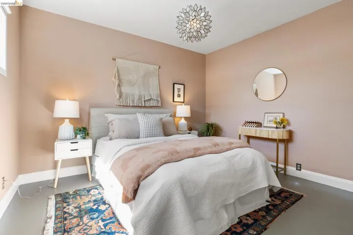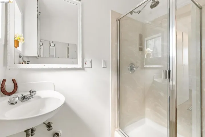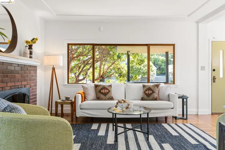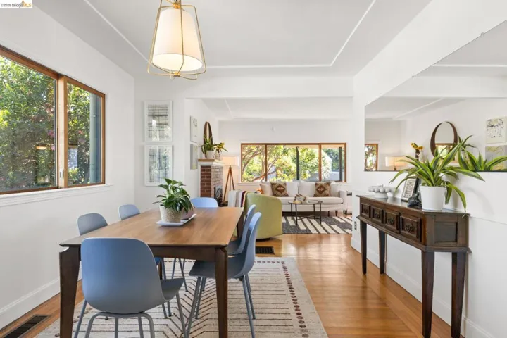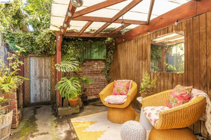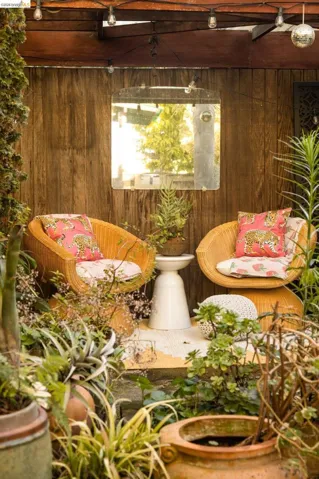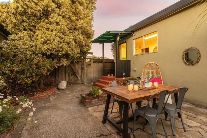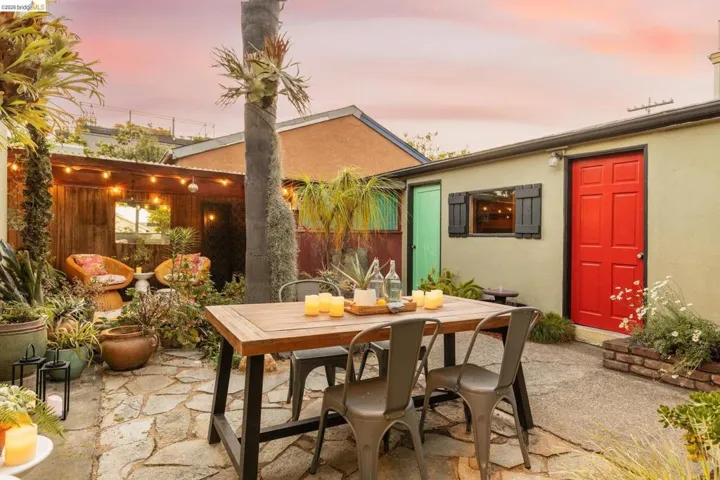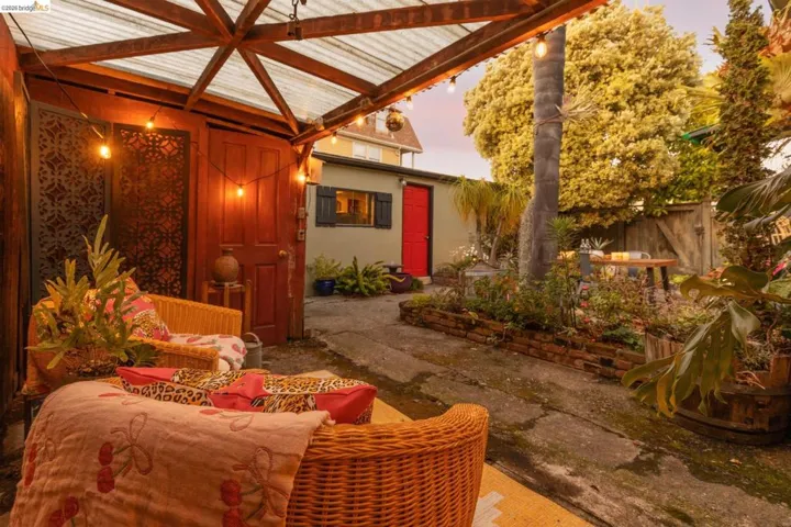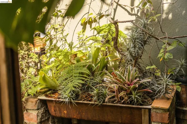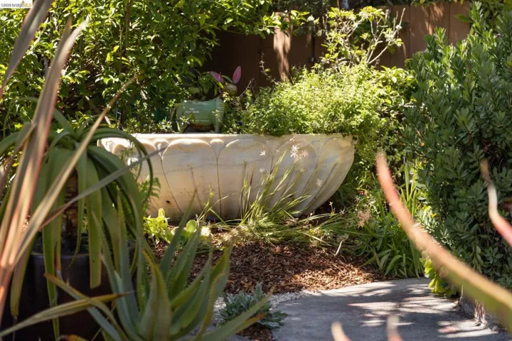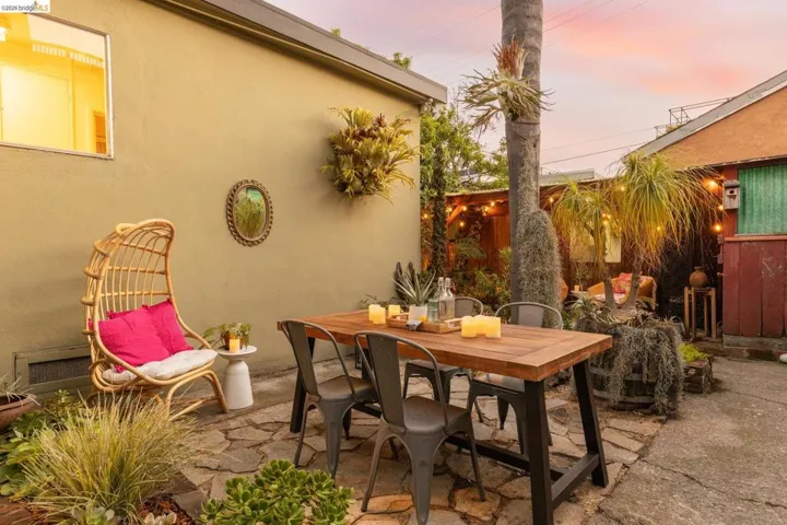 Tucked into a desirable corner lot, this enchanting home is wrapped in lush, mature landscaping that creates a private, oasis-like setting. A welcoming front porch sets the tone of relaxation and enjoyment. Inside, a gracious entry opens to bright living and dining rooms with gorgeous hardwood floors and fresh white walls. The living room features wide windows and a brick fireplace, while the dining room also offers expansive windows, a statement light fixture and a comfortable space for gathering with friends and family. Fabulous and stylish, the built-in desk is ideal for a home office. The vintage-inspired kitchen includes a classic gas range, ample cabinetry, and a cozy eat-in area. Three ample bedrooms and two baths provide flexibility. The gardens are a peaceful escape with exotic greenery. Created by notable landscape designer Vanessa Kuemmerle – this garden is inspirational. Gorgeous Balinese doors lead to a side path that evokes a lush nature walk. Mature magnolia and avocado trees, as well as blueberries, pomegranate, lemon, plum, and apple trees can be found. A fountain, large marble garden planter feature, whimsical garden accents, and a 200 gallon water tank all should not be missed. Detached workshop/makers space plus a garage. Ideal location offers Emeryville amenities with easy access to Oakland, Berkeley and major commute routes. Neighborhood favorites include: Paradise Park Cafe, Prizefighter, James and The Giant Cupcake, Arizmendi, Rudy’s Can’t Fail Cafe, Los Moles and Townhouse. Berkeley Bowl West, Bay Street and Emeryville Public Market are closeby. What a wonderful place to call home!