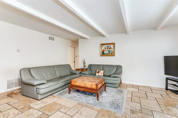 Welcome to this two-story single-family home in Anaheim. A small front porch leads to a double-door entry.