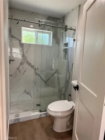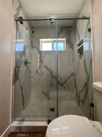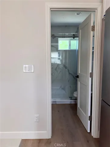 The glass door brings natural light and leads out to over 300 sqft of backyard space your personal oasis for outdoor relaxation or intimate gatherings.