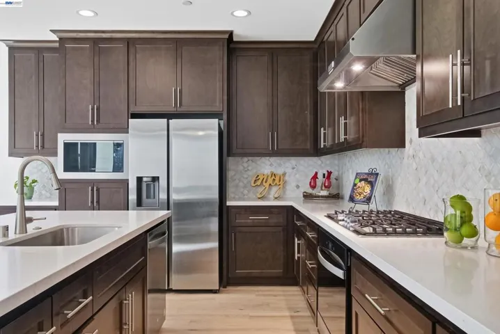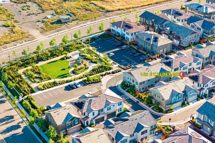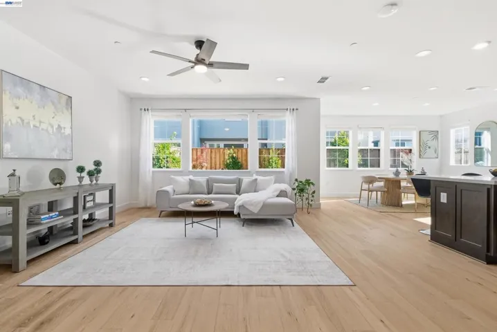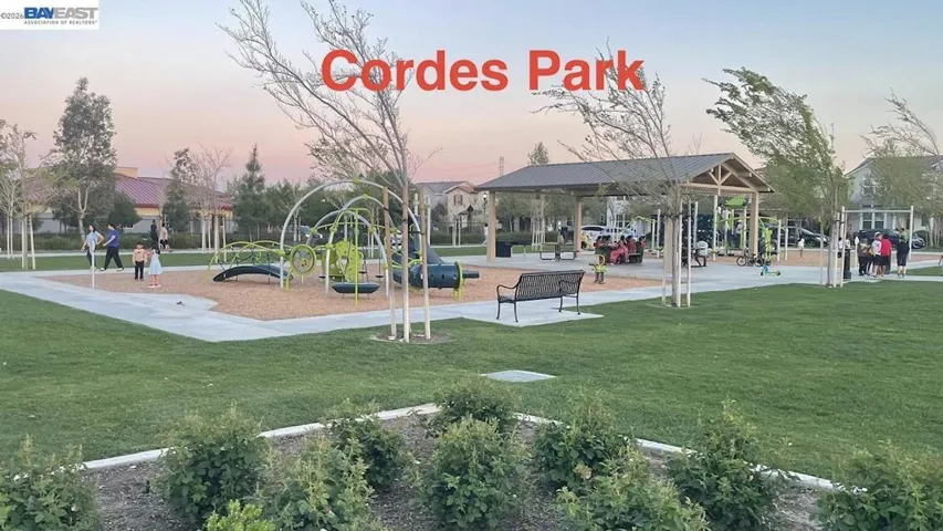 Welcome to this charming NORTH-FACING home in desirable Cordes community. This bright and cozy home features an open floor plan with south-facing kitchen, living, and dining areas that bring in abundant natural light. The upgraded kitchen includes quartz countertops, full mosaic backsplash, modern hardware, and recessed LED lighting. White oak engineered wood flooring enhances the first floor. Upstairs offers a spacious primary suite with barn-style sliding door and well-appointed bath, plus two additional bedrooms. Enjoy a beautifully landscaped backyard with patio surrounded by flowers and trees, perfect for outdoor living. Additional highlights include owned solar, upgraded lighting, ceiling fans, window coverings, and a finished garage with shelving. Over $53K in upgrades. Prime location: steps to Cordes Park and less than 1 minute walk to Langston Community Park behind the property. 2–3 minute walk to top-rated Julius Cordes Elementary (K–8), Mountain House High School, Apple shuttle stop, tennis courts, and Cordes Plaza. 10–15 min drive to Costco, Walmart, and shopping in Tracy. A must see!