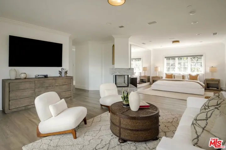 Set behind gates at the end of a quiet cul de sac in coveted Longridge Estates, this six bedroom, five bath residence offers nearly 5,900 square feet of refined living on over half an acre with mesmerizing panoramic views and privacy of the highest order. Remodeled with intention and upgraded to an exceptional standard, the home is crisp, bright, and effortlessly livable, comfortable yet refined. A grand foyer introduces a sense of scale and classic luxury, with high ceilings and warm hardwood floors guiding an open and well composed layout. The chef’s kitchen is beautifully appointed with custom cabinetry, striking stone, and top tier appliances, seamlessly connecting to the main living spaces. A thoughtfully designed floor plan includes a proper children’s wing, while the primary suite serves as a true retreat, expansive and serene with a substantial walk in closet and a spa caliber bath featuring heated floors, soaking tub, oversized steam shower, smart toilets, UV lighting, and the finest finishes throughout. Walls of glass open to a private outdoor setting with swimmers pool, lounge areas, and unobstructed views with no neighbors in sight. The end of cul de sac location offers a rare sense of space and community, creating a quiet and usable extension of the property for play and everyday living, while additional land below presents an opportunity to further expand and create a more traditional yard if desired. A secure sanctuary with patrol presence at the top of the driveway, this is a home where privacy is paramount without sacrificing connection or convenience. Moments from Ventura Boulevard yet completely tucked away, this is a property that lives beyond its footprint and a rare and compelling offering in one of Studio City’s most desirable enclaves.