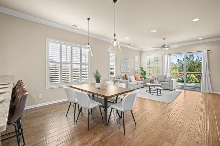 A single story home in top rated San Dieguito school district! The incredible open floor plan and chefs kitchen is great for entertaining. This home features a very livable and thoughtful layout with good separation between bedrooms. Large Crown molding creates a sense of quality and elegance throughout while the paid solar establishes elements of stability and functionality. Hillside views out back with no neighbors behind. Close proximity to shopping with the ability to get where you want from a great central and convenient location. Beautifully landscaped yard and neighborhood which will make you proud to call this home. Access to multiple pools including an Olympic sized pool. Don’t miss your opportunity to live in a single level home in a top rated school district. Both of those factors make this a smart investment priced 100k under the last model match in the neighborhood to sell.