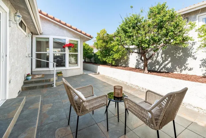 Located within the gated 55+ community of Las Brisas Pacificas, this land-owned home with a recorded 433A certification offers a rare blend of comfort, space, and everyday convenience in the heart of San Marcos. Spanning approximately 1,400 square feet, the open floor plan creates a bright and functional living space with seamless flow between the living, dining, and kitchen areas. The kitchen features a convenient breakfast bar along with a dedicated eat-in dining space highlighted by bay windows, bringing in natural light and creating a warm, inviting setting for everyday living. With two outdoor patios and low maintenance landscaping, the home provides multiple options to enjoy San Diego’s year-round sunshine in a peaceful, private setting. Recent updates throughout the home add a fresh and inviting feel, including all new LVP flooring in the main living areas and bathrooms and new paint in the kitchen dining nook. The home is equipped with an under-sink reverse osmosis water filtration system, newer washer and dryer, and a variety of mature fruit trees including oranges, lemons, apricots, and persimmons, creating a space that feels both comfortable and thoughtfully maintained. Las Brisas Pacificas is a gated community designed for low maintenance living, offering access to a pool, spa, clubhouse, and outdoor entertaining areas, along with well maintained grounds and shared spaces. Residents enjoy a quiet, well-kept environment while remaining just minutes from some of North County’s most popular destinations. Ideally located near Lake San Marcos, Restaurant Row, multiple golf courses, shopping at Bressi Ranch and nearby retail centers, Kaiser Permanente Medical Center, and just 7 miles from the coast, with easy access to the 78 freeway, this home offers the perfect balance of accessibility, recreation, and convenience for everyday living.