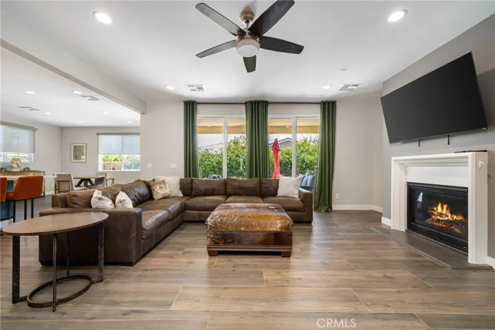 At the heart of the home is a stunning, modern chef-inspired kitchen featuring an oversized center island, sleek quartz countertops, and a generous walk-in pantry. The open-concept design flows effortlessly into the expansive great room and dining area, creating an ideal setting for both everyday living and upscale entertaining.
