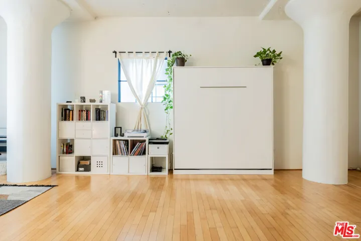 Unit 231 at Little Tokyo Lofts is a rare find: a quiet, interior-facing live/work loft with direct access to one of the building’s private outdoor courtyards, an amenity available only on this floor. Soft, even natural light fills the space throughout the day, making it ideal for creative work, photography, or a calm, minimalist home. The loft features smart built-ins, a space-saving Murphy bed, and an open layout that easily transitions from studio to residence. High ceilings, polished wooden floors, and clean architectural lines give the space a modern, flexible character.A major advantage of this unit is its oversized parking space located on the same floor a convenience rarely found in DTLA loft buildings, offering direct, secure, and effortless access. Little Tokyo Lofts offers controlled-access entry, 24-hour security, a pool, Jacuzzi, fitness center, dog run, and multiple outdoor areas. Positioned between Little Tokyo and the Arts District, you’re minutes from galleries, museums, dining, and cultural venues. Building well-maintained, HOA includes gas, water, sewer, and trash. Urban energy at your doorstep, with a retreat-like feeling at home.