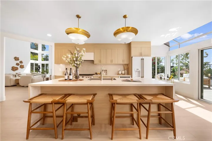 Located within the guard-gated Canyon Crest community, this designer residence blends LA design sensibility with the OC lifestyle, thoughtfully reimagined with approx $700K in permitted renovations. The home presents a cohesive design language where warm wood tones, curated stone, statement lighting, and clean architectural lines come together to create a calm, elevated living environment. Light, flow, and proportion are carefully considered, giving the home a sense of openness, balance, and quiet sophistication. Offering 5 beds and 4.5 baths, the layout is both functional and flexible, featuring a desirable main-level suite and an expansive upstairs bonus room ideal for a media room, lounge, gym, or multi-purpose use. Upon entry, soaring ceilings and large windows bring in abundant natural light, anchored by a designer fireplace, statement chandelier, skylight, and architectural staircase, creating a central space that feels both open and inviting. The dining area connects seamlessly to the backyard, supporting effortless indoor-outdoor living and entertaining. The kitchen serves as the heart of the home with a waterfall island, light-filled breakfast area, premium GE Café appliances, and custom cabinetry, complemented by a new washer and dryer, curated designer lighting, and optional furniture for a true move-in ready experience. Upstairs, the primary suite offers a private balcony, spacious walk-in closet, and a spa-style bath with dual vanities, soaking tub, walk-in shower, and a large picture window capturing sweeping views while maintaining privacy. The backyard features a pool, spa, and open outdoor space set against panoramic views, creating an ideal setting for entertaining, sunset gatherings, or quiet evenings, along with a 3-car garage for added functionality. Residents enjoy access to amenities including pools, tennis courts, fitness center, playgrounds, BBQ areas, and a clubhouse, with optional Lake Mission Viejo membership offering boating, swimming, fishing, and seasonal concerts. The home is served by strong public schools and nearby top private schools. Mission Viejo has also been selected as a pre-Games training site for multiple international teams ahead of the 2028 LA Olympics, supported by world-class facilities and the legacy of Nadadores, further elevating the city’s profile and reinforcing long-term value. This is where design, lifestyle and investment align—Opportunities like this don’t repeat, schedule your private showing today!