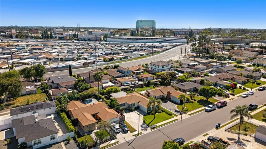 Absolutely charming, beautifully upgraded, and thoughtfully expanded single story home located in one of Midway City’s most desirable neighborhoods, just one block from Huntington Beach and within an award-winning school zone, close to Bella Terra, Old World Village, Golden West College, Little Saigon, and the beach, with convenient freeway access. This adorable 3 bedroom, 1 bath home offers approximately 1,363 square feet of comfortable living space, highlighted by a spacious family room addition featuring an open beam ceiling, mini-split A/C, and a wall of sliding glass doors that open seamlessly to the wrap-around backyard, creating the perfect indoor-outdoor flow for entertaining. The expansive yard includes multiple patio areas, wide side yards, a variety of fruit trees, and rear alley access through a back gate. The home boasts inviting curb appeal with a pristine lawn, lush tropical gardens, and a sweeping driveway that accommodates multiple vehicles and leads to a two-car garage. Step inside to an entry foyer that opens to a bright and welcoming living room and a sunlit kitchen with an eat-in dining area, tile countertops, gas range, vent hood, dishwasher, and abundant natural wood cabinetry. A convenient inside laundry room just off the kitchen offers additional storage. Most windows and sliders have been upgraded to dual pane, enhancing energy efficiency and comfort. The bathroom features tile flooring and tiled walls, a tub/shower combination with dual shower heads and grab bars, and all three bedrooms are equipped with ceiling fans. Perfect as a starter home, downsizing opportunity, or investment, this home offers charm, functionality, and an unbeatable location – a rare opportunity to enjoy expanded living space and coastal-close convenience at an exceptional value.