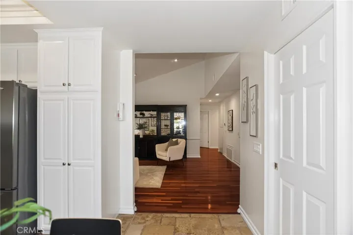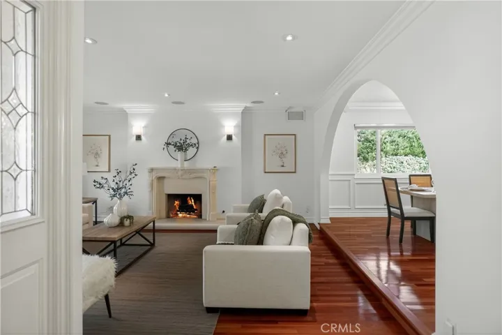 Welcome to this unique opportunity in the highly sought-after Fountainwood community of Agoura Hills. This exceptional single-story home offers over 2,100 square feet on an expanded lot exceeding 40,000 square feet—a combination of size, privacy, and potential that is seldom available. Ideally located on Carell Avenue, one of Fountainwood’s most desirable streets, the property enjoys wider spacing and no backyard neighbors, creating a level of privacy that is increasingly hard to find. From the moment you arrive, the home’s gorgeous curb appeal immediately stands out. Enter through an inviting atrium into a bright, flowing floor plan. Rich cherry wood flooring, custom moldings, baseboards, paneling, and wainscoting—crafted by a local artisan—add warmth and character throughout. The step-down living room is anchored by a striking limestone decorative fireplace, creating a sophisticated yet comfortable focal point. The kitchen features travertine floors, granite countertops, oak cabinetry, stainless steel appliances, and just outside the kitchen, a walk-in bar with counter seating—ideal for everyday living and entertaining. The spacious primary suite includes dual closets, including a walk-in, and a marble bath. Secondary bedrooms are well-proportioned, with a hall bath offering a relaxing spa tub. The backyard is where this home truly separates itself. Backing to open space, it offers exceptional privacy and tranquility. The oversized lot provides a rare opportunity to build a view deck on the hillside—unlocking what could become one of the most compelling view properties in Agoura Hills. The brick patio with awning is a perfect outdoor sanctuary, and is a blank canvas for a future pool or custom outdoor retreat. Additional features include owned solar panels (offsetting electric costs), smooth ceilings, recessed lighting, built-in garage storage, fresh paint, a tile roof, and a concrete driveway designed for long-term, low-maintenance living. Fountainwood is known for its peaceful setting, strong sense of community, and access to award-winning schools within the Las Virgenes Unified School District. Surrounded by scenic mountains, hiking and biking trails, and parks, yet just minutes to shopping, dining, the freeway, and the beach — this location offers the best of both convenience and lifestyle. The fire in the decorative fireplace was added virtually.