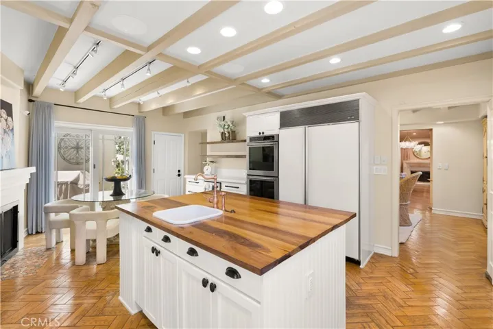 Experience refined coastal living in this exquisite French Provincial tri-level home, ideally positioned in exclusive Naples Island of Long Beach. Just steps from the scenic waterways and moments from world-class dining, this beautifully appointed residence offers timeless elegance with flexible furnishing options to suit your lifestyle. The first level welcomes you with a grand entry that opens to a formal living room featuring soaring vaulted ceilings, a fireplace, and a wet bar, perfect for entertaining your guests. The formal dining room showcases a stunning coffered ceiling with decorative floral inlays, and a stunning chandelier adding a touch of sophistication. A spacious eat-in kitchen anchors the rear of the home, complete with a large center island and prep sink, full suite of appliances, and direct access to a private patio with built-in BBQ, ideal for alfresco dining. A guest powder room, indoor laundry, and direct-access two-car garage complete this level. The second level offers three bedrooms and a large family/media room with its own wet bar and wine refrigerator. One of the bedrooms features an en suite bath, while another versatile space toward the rear adapts beautifully as a private bedroom, executive home office, or personal fitness studio, perfect for today’s flexible lifestyle. A second full bath serves the remaining rooms. Ascending to the third level, you’ll find the primary suite, a serene retreat featuring a fireplace, walk-in closet, and a newly remodeled spa-inspired bath with floor-to-ceiling tile, a floating vanity, modern fixtures, and an expansive dual-head walk-in shower. The entire suite is designed for privacy and comfort, separated from the rest of the home. A few steps above the primary suite leads to the rooftop deck, an entertainer’s dream with panoramic 360º views of Naples Island, comfortable patio seating, and a gas fire pit that is perfect for sunset gatherings or evening relaxation. This exceptional home combines timeless European charm with modern amenities, all within Naples Island’s coveted waterfront enclave, one of Southern California’s most distinguished residential communities.