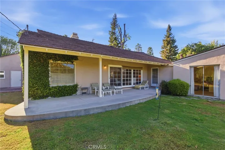 massive yard is dotted with mature trees, including lemon and orange, and offers endless