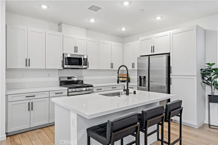 Located in the gated Narra Hills community, this newer construction 2-story condo (no common walls) offers modern design, energy efficiency, and a functional open floorplan. Built in 2024, this 3-bedroom, 2.5-bath home features 1,372 square feet of well-designed living space. The main level showcases an open-concept layout with a spacious living room featuring an electric fireplace, flowing seamlessly into the dining area and kitchen. The kitchen is designed for both style and function, offering upgraded cabinetry, a center island, and direct sightlines to the main living area ideal for everyday living and entertaining. A convenient ½ bathroom is located downstairs. Upstairs, all three bedrooms provide privacy and comfort, including a spacious primary suite with a walk-in closet and an en-suite bathroom featuring double sinks and a walk-in shower. A full hall bathroom with dual sinks serves the additional bedrooms. The upstairs laundry room adds everyday convenience. Additional features include paid-off solar panels, plantation shutters, recessed lighting, dual pane windows, and a 2-car attached garage with direct access. Residents enjoy access to resort-style association amenities including a pool, spa, pickleball courts, clubhouse, BBQ and outdoor cooking area, fire pit, picnic areas, playground, and dog park. Conveniently located near shopping, dining, and major freeways, this home offers a blend of modern comfort, efficiency, and community living.