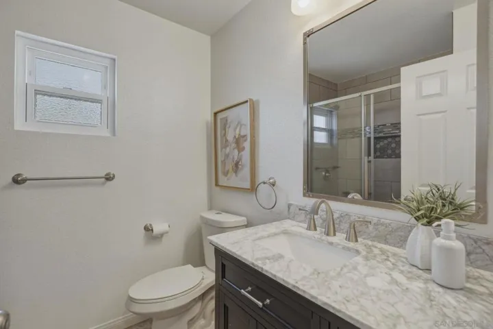 Welcome to this thoughtfully designed 4BR/3BA gem, nestled on a peaceful cul-de-sac. From the moment you arrive, you’ll appreciate the lush landscaping, ample parking, including space for an RV, and the home’s freshly painted exterior. Inside, every detail has been meticulously crafted for style and functionality. Freshly painted inside as well, the home has new carpet upstairs, elegant interior shutters on every window, and matching outlets and switches for a polished, cohesive look. The first floor has brand-new tile flooring, a remodeled kitchen, a refreshed bathroom, and a charming fireplace for cozy evenings. Head out to your designer backyard for relaxation and entertainment. Enjoy lush landscaping on drip irrigation, new concrete pads, a direct gas fire pit, a dedicated dog run, and durable composite plank fencing, all designed for beauty and low maintenance. Energy efficiency is key, and with 23 fully owned solar panels, you can turn the A/C on high AND love getting your SDG&E bill each month. Plus you also have a whole-house water filtration and softener system! With its perfect blend of thoughtful upgrades and its prime location, this move-in-ready home truly has it all. Don’t wait – your dream home is here!