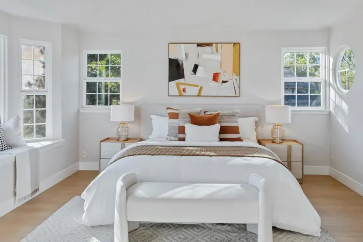 Nestled on a picturesque, tree-lined street, this masterfully redesigned residence offers the perfect blend of elegance and modern efficiency. From the moment you cross the threshold through the Mahogany double doors, youll notice a home designed with meticulous attention to detail. The expansive 2,376 sq. ft. layout features brand-new flooring and fresh designer paint, illuminated by a bespoke interior lighting package. The open-concept living and dining areas flow effortlessly, creating an ideal space for both intimate family evenings and grand entertaining.