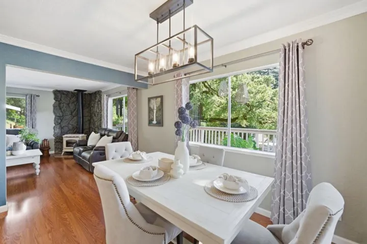 Escape the hustle and step into your own private retreat on sought-after Hihn Road in beautiful Ben Lomond. This hidden gem offers 3 bedrooms, 2.5 bathrooms, and 1,476 sq. ft of thoughtfully designed living space, surrounded by towering redwoods, fresh mountain air, and unobstructed views of the breathtaking San Lorenzo Valley. Wake each morning to peaceful, panoramic scenery and unwind in the evenings with vibrant sunsets from the expansive wraparound deck, an ideal setting for morning coffee, outdoor dining, or simply soaking in the serenity. The seamless indoor-outdoor flow creates a lifestyle that feels calm, elevated, and completely removed from the everyday. A unique highlight is the inviting tiki lounge, offering a relaxed, island-inspired setting perfect for entertaining or enjoying quiet moments year-round. Perfectly positioned for both, privacy and accessibility, you’re just minutes from Henry Cowell Redwoods State Park, 10 minutes to Highway 17, and roughly 20 minutes to the nearest beaches. This is more than a home it’s a peaceful mountain sanctuary where nature, views, and lifestyle come together effortlessly.