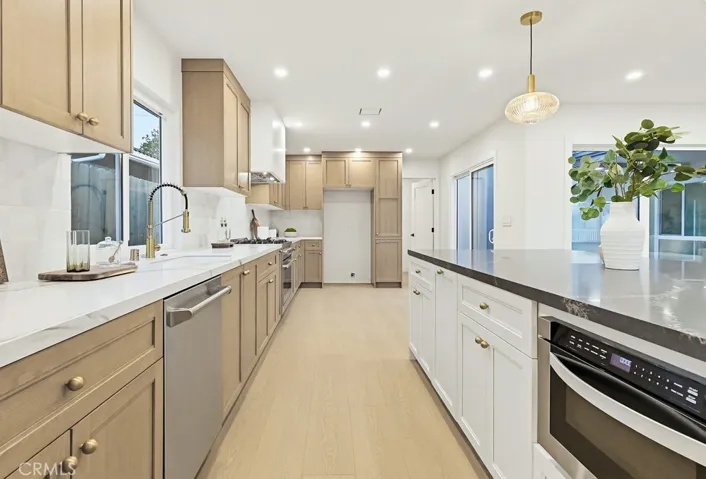Welcome to this beautifully remodeled 4-bedroom, 2-bath home, where modern upgrades meet comfort and functionality. Every detail has been thoughtfully updated, including a brand-new kitchen featuring high end appliances, an oversized double island and plenty of cabinetry, completely renovated bathrooms, new windows and doors, a new HVAC system, new water heater, new plumbing throughout, and sleek new flooring. Fresh interior/exterior paint adds a bright and inviting feel. The home boasts a spacious open-concept layout, seamlessly connecting the living room, dining area, and kitchen-perfect for entertaing or everyday living. A seperate laundry room adds convenience, while the attached 2-car garage provides ample parking and storage. Step outside to a generously sized backyard with plenty of open space, offering endless possibilities for future expansion, outdoor living, or customization to fit your needs. This move-in ready home combines modern living with room to grow- don’t miss the opportunity to make it yours!