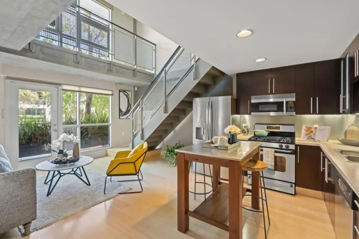 This chic 1-bedroom loft-style home offers a sophisticated blend of volume, light, and modern design. With soaring ceilings, oversized windows, and an open-concept layout, the residence feels both airy and inviting. A sleek kitchen with contemporary finishes opens to the main living and dining area, creating an ideal setting for both everyday living and entertaining. The loft-style bedroom enhances the homes architectural character while offering a stylish sense of separation and privacy. Located in a full-service doorman building, residents enjoy access to a full gym, a gorgeous landscaped courtyard, a community library, and more. The home also features central A/C, a rare luxury in San Francisco, as well as the convenience of an in-unit washer and dryer, and dedicated parking in secured garage. Perfectly situated in South Beach, this home places you close to the waterfront, renowned restaurants, shopping, and the best of city living.