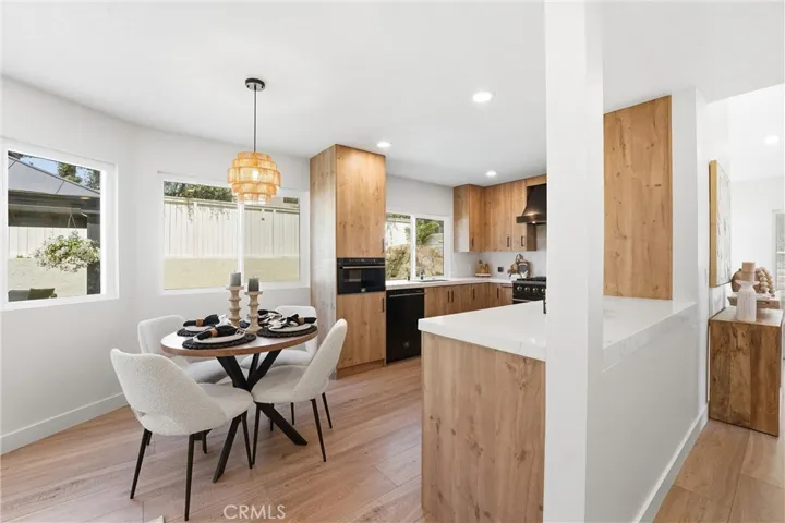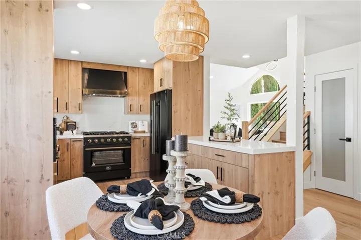 This high-end home showcases thoughtful upgrades throughout and has been fully remodeled, with a brand new kitchen featuring quartz countertops and high-end appliances, brand new bathrooms, new flooring, and fresh interior and exterior paint. It also features new interior doors, a modern iron front door, a brand new staircase with sleek iron railings, and a garage with a brand new epoxy floor. Recessed lighting shines in every room.