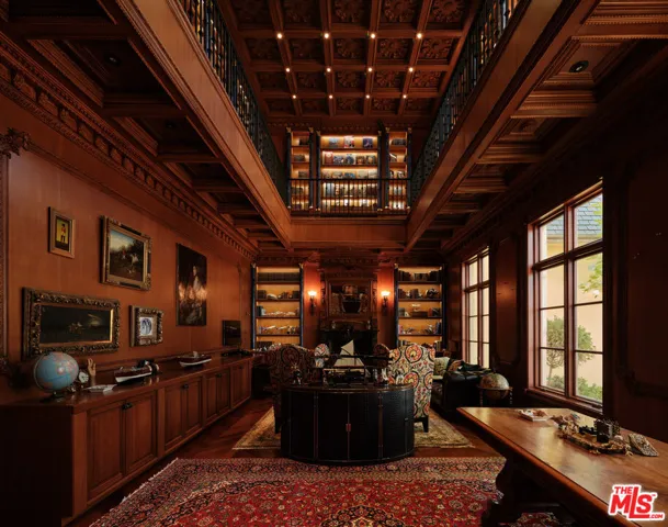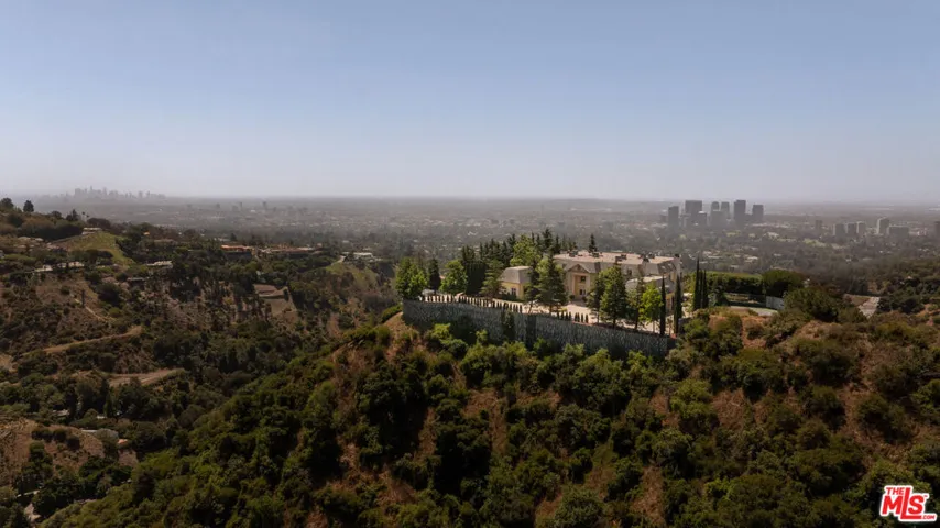 Poised high atop a promontory, this palatial European Estate boasts jaw-dropping 360 degree views of all of Los Angeles. Rich in privacy behind gates and up the long tree-lined driveway, this fortress of unparalleled magnitude is revealed. Situated in a world of its own overlooking the stunning gardens and city, this home is the epitome of royal living in the most sought-after city in the country. High ceilings, ornate details and grand-scale rooms are showcased beyond the luxurious foyer and Imperial Staircase through the massive double door entrance. Highlights from the main floor include an industrial grade chef’s kitchen with an adjacent light and bright breakfast room, a formal dining room with double doors made with Venetian stained glass windows, an impressive living room with a gorgeous bar and fireplace, a billiards room, and a formal sitting room. Among the many jewels of this home is the two story library which includes a steel spiral staircase and a vibrant irreplaceable stained glass light fixture. Upstairs, the master bedroom rivals that of a European castle with multiple private terraces, city and nature views, his and hers closets, a massage room and a luxurious bathroom made with lapis stone. In addition to the master suite there are four oversized en suite bedrooms each with beautiful views and walk in closets. The lower level is an entertainer’s paradise with a theater, ballroom that opens up to a sprawling terrace where your guests can soak in the picturesque views, and a wine cellar that’s authentically outfitted as the storefront of an early 18th century English saloon. The backyard consists of a sparkling pool and spa, outdoor kitchen, putting green, a fruit and vegetable garden, tennis court, koi pond, and endless places for dining al fresco. In addition to the various amenities, the home is also equipped with an oversized gym. This tranquil oasis is quintessential to the highest class of luxury living, built for those who hold history, design, and beauty in the highest regard.