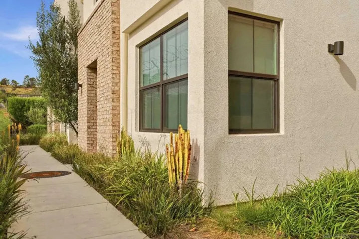 From the moment you walk in, this beautiful Poway townhome feels bright, refined, and instantly inviting. Step inside to a light-filled living area with windows dressed in wood shutters and an easy flow into the updated kitchen. The kitchen features stainless steel appliances, ample cabinetry, and a floating sit-down island that creates a natural gathering space for meals, conversation, and entertaining. Located in the newer Poway Commons community, this end unit offers a true primary suite retreat with private balcony, ensuite bath, dual vanity, large sit-down shower, and a walk-in closet. Additional highlights include in-unit washer and dryer, private patio, low HOA, and a 2-car direct access garage with EV charger. Set within a gorgeous community near Poway Park, excellent Poway school district, and close to shopping, this home offers resort-style living priced to sell.