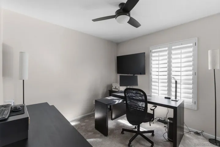 Complete privacy in prestigious Scripps Ranch. This elevated home sits at end of long private drive w/rolling hills views & total seclusion. Inside: owned solar, newer appliances, California closets & abundant natural light throughout dual & triple pane windows. Central heat/air & upgraded lighting inside & out complete thoughtful upgrades. Smart floor plan w/main-level bedroom & full bath perfect for multigen living, upstairs primary suite overlooking hills w/custom closets for exceptional storage. Kitchen w/appliances under 5 years old, move-in ready for daily life & entertaining. Pool, entertaining space & neighboring park create private compound feel. Backyard connects seamlessly to adjacent park – extra play space w/o maintenance. Oversized drive handles multiple cars & provides safe play areas for kids. Drip irrigation keeps landscaping efficient. Secluded setting feels like only house in neighborhood, surrounded by quiet neighbors & backing to open space. Views stretch uninterrupted from elevated position. Walk to top-rated Ellen Browning Scripps Elementary School, close to Marshall Middle & Scripps Ranch High. Rare combination of privacy, upgrades & location.