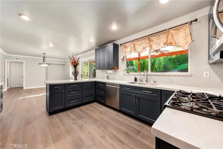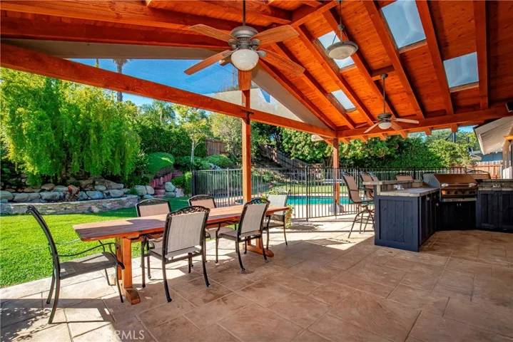 Mid-century modern meets upgraded elegance! This one checks all the boxes! Elevated above street level for added privacy, with 5 large bedrooms, and 4 full bathrooms, plus an office, formal dining room (or family room), & separate downstairs laundry room, you can enjoy the space you need for a growing family! There are 2 large bedrooms upstairs with a full bathroom, and 3 large bedrooms downstairs (2 masters!) with 3 full bathrooms. Many quality upgrades & additions have graced this fabulous home since the current owners first moved here over 30 years ago! The chef’s kitchen has been recently renovated with gorgeous Quartz countertops, stunning flooring, new cabinets with self-closing feature, & new farm-style sink. The kitchen opens up to the formal dining room (or family room), with a sliding glass door to your stellar back yard featuring a fully fenced in-ground Gunite pool, lush landscaping, beautiful koi pond with water feature, and plenty of mature trees including a large Pepper tree with colorful foliage. Enjoy the best of outdoor entertaining with your own huge covered built-in barbeque with bar stool seating & ceiling fans. The covered and private home entryway opens up to your cozy living room with huge bay window & bench seating, plus a functional fireplace to warm those chilling nights. The hallway to the left brings you to a full bathroom with tub & shower, and then the main master suite, which features 2 large closets (one walk-in), large bay window, and attached remodeled bathroom complete with a stunning walk-in shower & dual vanities. The second downstairs master bedroom features a large window, and an attached bright full bathroom. The attached garage is functional & convenient with workshop area & complimentary freezer, and opens up to the laundry room and extra fridge. A stand-out feature is the large RV parking behind the driveway gate, and there is a large storage room, plus outside sheds on a concrete slab. The neighborhood is eligible for excellent local schools within the Conejo Valley Unified District, including the highly coveted M.A.T.E.S. Charter School, plus Westlake High School. The Canejo Creek North Library & Community Park is within walking distance, with a public entrance gate located right on Fremont Drive! Other local shops & venues just minutes from your home include the Civic Arts Plaza, local shopping malls, Large Home Goods & Whole Foods, and Los Robles Hospital. Schedule your tour today before it’s gone!