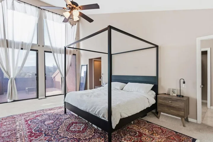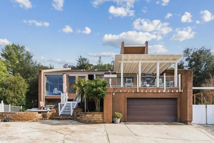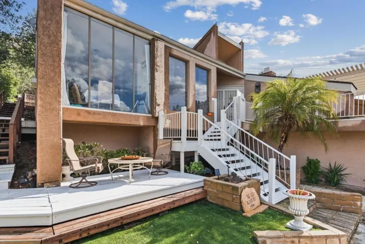 BEST PRICED HOME IN RAMONA! SELLER IS MOTIVATED! Experience panoramic golf course and mountain views from this stunning San Diego Country Estates home! Offering over 3,100 sq ft with 5 bedrooms and 4.5 bathrooms, this spacious two-story residence is filled with natural light and designed to capture the scenery from nearly every angle. Floor-to-ceiling windows create a bright, open feel throughout the main living areas, while the expansive living room with fireplace opens to an oversized deck—perfect for entertaining or relaxing at sunset. The open kitchen features granite countertops, breakfast bar seating, ample cabinetry, and a sunny dining nook. The primary suite is a true retreat with its own private balcony overlooking the golf course and surrounding hills—ideal for morning coffee or evening views. Generously sized secondary bedrooms offer flexibility for guests, office space, gym, or multigenerational living. Outdoor living is effortless with multiple decks, a pergola-covered entertaining area, and a low-maintenance backyard with artificial turf and terraced landscaping. The elevated lot provides privacy and sweeping views, and the SOLAR system adds energy efficiency and long-term savings. Attached 2-car garage with a full bathroom and potential to convert into a sauna. Located in the desirable San Diego Country Estates community with golf, pool and spa, tennis, clubhouse, parks, and scenic trails—just minutes to schools, shopping, and dining.