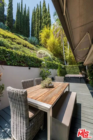 Sophisticated Contemporary Retreat in prime Lower Doheny. This gated Mid-Century is located on a quiet cul-de-sac street, surrounded by lush & mature landscaping. A bright & airy atmosphere awaits w/an open floor plan & floor to ceiling windows, allowing for an influx of natural light & views from all rooms. The spacious living room features high ceilings, state-of-the-art sound system & cozy fireplace, & seamlessly flows into the kitchen complete w/high-end stainless-steel appliances & breakfast bar. The master suite boasts floor to ceiling glass, a beautifully remodeled en-suite bathroom & custom built-ins. 2 add’l guest bedrooms, one w/custom walk-in closet. An outside patio provides the perfect spot for entertaining w/BBQ, hot-tub & extensive grounds complete with city views. Additional features include attached 2-car garage, security/surveillance system & smart-home technology.