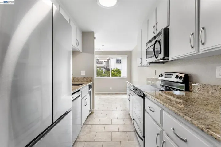 Welcome to this highly desirable no steps to entry unit offering comfort, convenience, and modern updates throughout. The kitchen features sleek granite countertops, a new refrigerator, and updated faucet, while the home also boasts all brand new Milgard Dual pane windows, a new water heater, fresh interior paint, and brand-new carpet. Both bathrooms have been thoughtfully refreshed with newly refinished tile, new shower doors, updated faucets and fixtures, freshly painted cabinetry, new medicine cabinets, and modern lighting. Additional upgrades include new blinds and the convenience of in-unit laundry with a brand-new stacked washer and dryer. Enjoy resort-style living in this gated community, complete with multiple swimming pools, a clubhouse with recreation space, game room, and exercise equipment. The unit also includes a covered parking space (#2). Ideally located just blocks from BART and major freeways, and minutes from downtown Castro Valley’s shopping, dining, and entertainment—this home offers the perfect blend of accessibility and lifestyle.