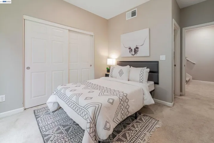 Discover this beautiful home in the heart of the Bay Area, located in a welcoming and well-maintained community. With a total of 2,043 sq.ft of thoughtfully designed living space, this three-story house has 4 spacious bedrooms and 3.5 bathrooms. The open floor plan nicely blends the kitchen, dining, and living areas – perfect for everyday living and entertaining. The contemporary kitchen offers quartz countertops, stainless steel appliances, a large island, ample cabinetry, and a pantry. Upstairs, the generous primary suite features a walk-in closet and a private, retreat-like feel. The ground-floor suite provides flexibility for guests, extended family, or a home office. Other highlights include a side-by-side two-car garage, seller-owned solar, central heating, and A/C. Enjoy a private side yard and a beautifully landscaped community garden. The home is conveniently located near I-880, Hwy 92, and 238 for easy commuting. Open House Sat 1 to 4p.m & Sun 2 to 5 p.m. A Must See!