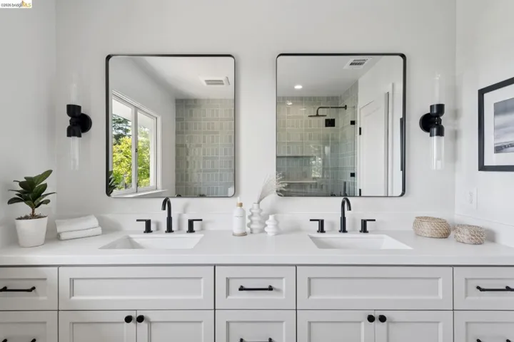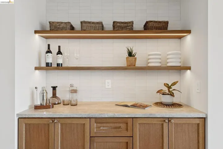 This exceptional home just feels good! Luxurious and welcoming, it engenders a sense of comfort and well-being – exactly what you want in a home. The spacious living & dining rooms feature beautiful bay views, while the gorgeous kitchen and cozy family room connect wonderfully with the level backyard. It is a home designed for everyday ease and enjoyment, while also providing a perfect setting for both formal and informal entertaining. The dramatic foyer, with herringbone floors and a large picture window to the backyard, divides the main living spaces from the bedroom wing. The primary suite is a true retreat, offering ample room for restorative relaxation, along w/ two closets & a spa-like en-suite bath. Two more bedrooms, an attractive hall bath, and generously-sized laundry room round out this portion of the home. A dedicated office overlooks the yard and offers a space set apart from the main living areas. The patio and backyard beckon, featuring an outdoor kitchen & bar, and space for outdoor dining or gathering around the outdoor gas fireplace. The gated driveway leads to a two-car garage as well as a large basement available as a workshop, storage space, or wine cellar. Back inside, you’ll find a guest bedroom tucked behind the kitchen, which can of course serve myriad other uses. Located in a lovely neighborhood with serene appeal while also offering close proximity to Montclair Village shops, parks & library, excellent public & private schools, Transbay Express routes, and convenient highway access. Also nearby are Glenview, Rockridge, and Elmwood amenities, Claremont Hotel & Resort, Claremont Country Club, and so much more. All told, this home truly presents an extraordinary opportunity. Please accept our invitation to come experience it for yourself!