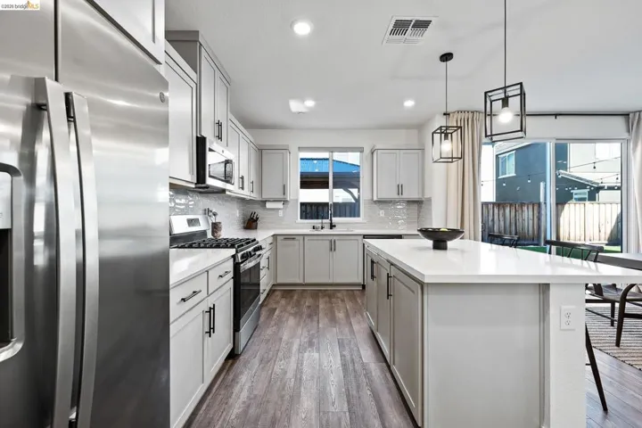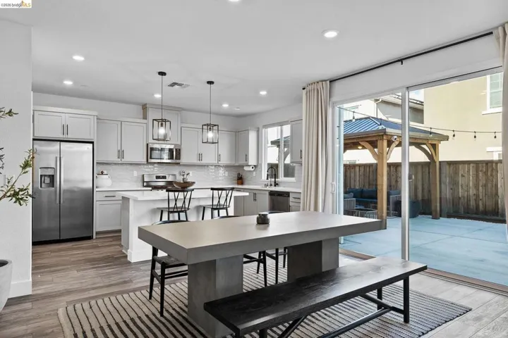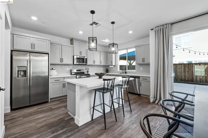 Welcome to 138 Granite Way, a beautifully appointed residence located in Oakley’s sought-after Woodbury community. With a like-new feel and thoughtfully designed two-story layout, this home offers the perfect blend of modern style, comfort, and functionality. From the moment you step inside, you’ll appreciate the open-concept design, creating an effortless flow between the main living spaces and making the home ideal for both everyday living and entertaining. The heart of the home is the beautifully designed kitchen, featuring upgraded finishes, sleek black cabinet pulls, abundant cabinetry, and a bar area perfectly positioned within the kitchen space for casual dining, serving, or gathering with guests. The kitchen opens seamlessly to the living room, creating a warm and connected atmosphere that feels both spacious and inviting. Upstairs, the home continues to impress with a convenient laundry room and a stunning primary suite designed to feel like a private retreat. Filled with natural light from large windows, the primary bedroom offers a bright and airy ambiance, while the en-suite bathroom delivers a spa-like experience with dual sinks, a large sunken soaking tub, a tall standing shower, and an expansive walk-in closet. Additional highlights include a finished garage and a thoughtfully designed backyard created for low-maintenance enjoyment and stylish outdoor living. Featuring turf, fresh putting green, a pergola, and string lighting, the backyard offers the perfect setting to relax, entertain, or enjoy evenings under the lights. Sophisticated, move-in ready, and located within one of Oakley’s desirable newer neighborhoods, this home offers elevated living with modern appeal throughout.