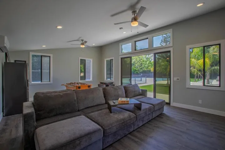 Welcome to 1960 Pear Dr, a beautifully renovated home in Morgan Hill blending luxury, comfort, and modern design. With 4,232 square feet, it offers 5 spacious bedrooms and 3 updated bathrooms with 2 half baths. The thoughtfully updated kitchen features high-end appliances, gorgeous countertops with two dishwashers, tile flooring, dual-pane windows, and whole-house solar that adds style and efficiency. The primary suite includes a spa-like free standing bath with dual vanities, walk in shower, fireplace and large walk-in closet. Custom California Closet systems are found throughout the home. Enjoy a large media/game room off of the family room with a drink fridge and microwave. Outdoors, relax in the solar-heated pool and hot tub, or entertain in the pool house, on the patio with a gas fire pit, horseshoe pit, and full-size tennis court. The landscaped yards, RV parking with hookup, and raised garden beds add versatility. Additional features include central heating and AC, shutters, and a 4-car garage. This exceptional home is perfect for both relaxing and entertaining! Don’t miss this one!