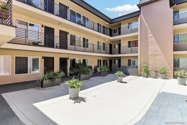 Situated in San Diego’s vibrant University Heights neighborhood, this turnkey 1-bed, 1-bath upper level condo in the Louisiana Apartments offers a practical and comfortable approach to metro area living. The thoughtfully designed interior is light and bright throughout, features new windows in the bedroom & bath, and raised panel doors that add subtle character to the space. The kitchen provides a highly functional layout with crisp white cabinetry, modern appliances, and a custom tile backsplash, opening naturally into the main living area to create an inviting space for unwinding or having friends over. Living in the Louisiana Apartments comes with reliable everyday conveniences, including elevator access and an assigned off-street parking space that serves as a major asset in this bustling area. The building is also seeing great updates, with a new roof coming soon and new washers and dryers slated for the laundry room, which conveniently has bike storage located right next door. The most compelling aspect of living here is the surrounding neighborhood itself. Being just two miles from iconic Balboa Park and boasting highly walkable and bikeable streets, you can easily head out to explore an eclectic mix of local coffee shops, independent boutiques, casual eateries, and popular nightlife spots just blocks from your front door. Leave your car behind and step directly into the creative rhythm of the city, returning each evening to a quiet sanctuary that perfectly anchors your life in the very heartbeat of University Heights.