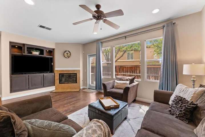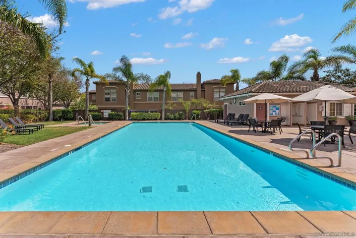 Welcome to this 3-bedroom, 2.5-bath townhome in the highly sought-after Vista Sonrisa community of Otay Ranch. The open-concept floor plan is ideal for entertaining, featuring a spacious living room with fireplace and built-in entertainment center that flows into the dining area and private patio for seamless indoor-outdoor living. The kitchen offers a center island, granite countertops, glass tile backsplash, travertine flooring, and a large pantry. The primary suite features an en-suite bath and walk-in closet. Additional highlights include a one-car garage and access to resort-style amenities including a pool, BBQ area, and manicured grounds. FHA & VA approved complex.