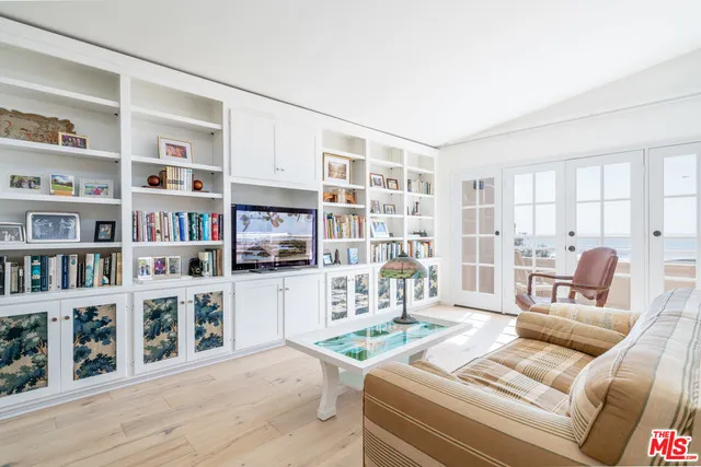 Set along coveted Broad Beach, this thoughtfully reimagined coastal home captures the essence of modern Malibu living, effortless, refined, and deeply connected to the ocean. Expansive accordion doors dissolve the boundary between indoors and out, opening to a generous beachfront patio designed for both intimate mornings and sunset gatherings. Inside, soaring beamed ceilings frame the main living spaces, where a painted brick fireplace, built-in seating, and a relaxed media room create a warm, inviting atmosphere. The kitchen is sleek and functional, anchored by stainless steel appliances and a distinctive painted concrete floor that adds a subtle, artistic edge. Upstairs, dual primary suites take in sweeping Pacific views and share a cozy, book-lined den as an ideal retreat. Four additional en-suite bedrooms open to a tranquil interior courtyard, offering a rare balance of privacy and connection. Completely updated with a confident, understated design sensibility, this is a true Broad Beach escape, easy, elevated, and designed for the rhythm of coastal living.
