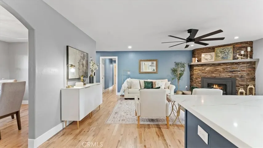 The nearly 2,000 sq. ft. home features 4 bedrooms and 2 bathrooms with a thoughtfully designed layout, including an open-concept living and kitchen area ideal for everyday living and entertaining. The kitchen is a standout, featuring a large island with a gas cooktop and bar seating, along with a huge walk-in pantry conveniently located just off the kitchen. A formal dining room adds additional space for gatherings.