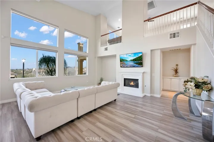 LAKE VIEWS + OVERSIZED LOT | DOWNSTAIRS PRIMARY + BEDROOM | LARGE LOFT | 3-CAR GARAGE | There’s something about Tuscany Hills that just hits—and this home has it all. With sweeping lake views, a smart layout, and upgrades that actually matter, it’s the kind of place that feels as good as it looks. It starts at the curb: mature landscaping, great presence, and a front porch made for slow mornings. Inside, the vibe opens up immediately with cathedral ceilings, natural light, and upgraded luxury plank flooring (2020) grounding the space. Fresh interior paint (2020), plantation shutters, and recessed lighting keep everything feeling clean and current without trying too hard. The layout flows in a way that just makes sense. A Living Room with fireplace connects to the Formal Dining Room, while the oversized Family Room—with its own fireplace—opens things up for easy, everyday living. The Kitchen was fully upgraded in 2020 and is dialed in: granite countertops, custom backsplash, extended cabinetry with under-cabinet lighting, a deep sink, glass display cabinets, and a walk-in pantry. You’ve also got breakfast bar seating, a dining area, & direct access to the backyard. Downstairs, the Primary Suite keeps things private with its own slider outside. The Ensuite feels more spa than standard—soaking tub, dual vanities plus a dedicated makeup space, a large walk-in closet, and a frameless glass shower with custom tile and a built-in bench. There’s also another bedroom and full bath on the main level, which makes hosting or multi-gen living easy. Upstairs, two more bedrooms, one with a walk-in closet, a dual-sink bathroom, and a loft that’s honestly a whole moment—complete with a wet bar, wine fridge, and bar seating. Step out onto the oversized deck and you get panoramic mountain and lake views that make you want to stay awhile. The backyard delivers: BBQ island, firepit, covered patio, and those Canyon Lake views as your backdrop. It’s set up for nights in, weekends with friends, or both. Practical upgrades are covered too, with new faucets and toilets (2020), plus a 2-car garage and a separate third-car bay that works as a gym, office, or flex space. The extended driveway handles the rest. Living here also means access to Tuscany Hills’ resort-style amenities—pool, spa, tennis, pickleball, gym, and clubhouse—plus easy access to the 15, 91, 71, and 241, with shopping and dining just minutes away. This is The One!