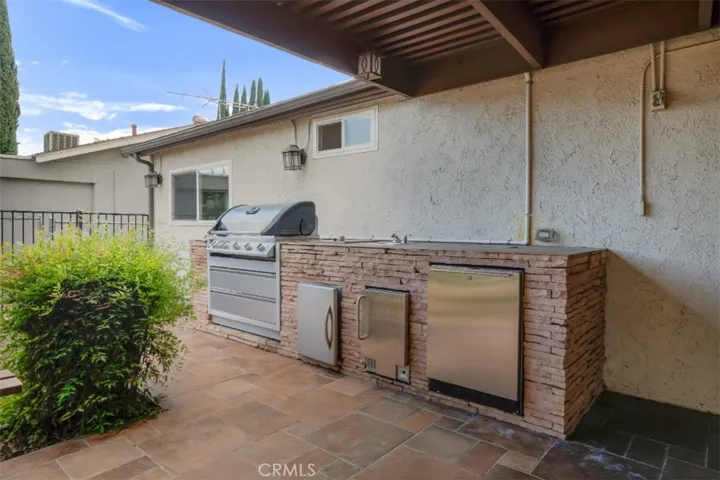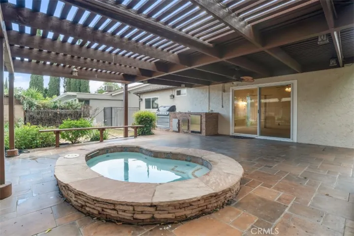 Single-story 3-bedroom, 2-bath residence in the heart of Valley Glen, offering a distinctive blend of character and comfort in one of the central San Fernando Valley’s most established residential neighborhoods. Freshened up and move-in ready, this home also presents an excellent opportunity for a buyer to tailor the interiors over time to suit more contemporary tastes. A pergola-covered front walk and double-door entry lead inside to dramatic vaulted, wood-beamed ceilings, skylights, and an airy layout that connects both formal and informal living spaces. The formal living room is anchored by a large, commanding brick fireplace with raised hearth, creating a striking focal point, while the separate informal living room opens to both an enclosed patio and side patio, offering flexibility for everyday living or entertaining. At the center of the home, an open courtyard with wood slat decking and sliding door access from both the kitchen and informal living room creates a rare indoor-outdoor element with tremendous potential. The kitchen becomes the heart of the home, with granite counters and backsplash, ample cabinetry, recessed lighting, a tray ceiling, and direct access to the courtyard, with the dining area nearby framed by a large picture window overlooking the yard. Down the hall, the primary suite includes mirrored closets, direct backyard access, and en-suite bath with dual vanities, and an updated tiled shower. The sizable secondary bedrooms share a full hall bath, creating a functional layout for family, guests, or workspace needs. Outside the versatile yard includes a large pergola-covered rear patio with ceiling fans, built-in BBQ/outdoor kitchen, in-ground spa, grassy lawn and mature landscaping for privacy. Attached 2-car garage with storage and laundry hookups. Property boasts Solar panels, whole-house battery backup, and owned water softener! Well situated near shopping, dining, parks, and commuter routes, this is a property with warmth, presence, and room to make it your own. Don’t miss out!