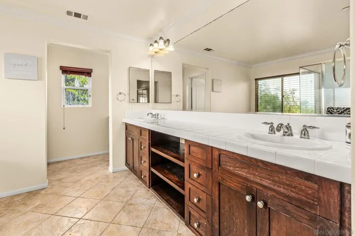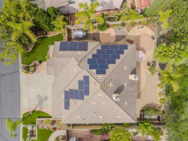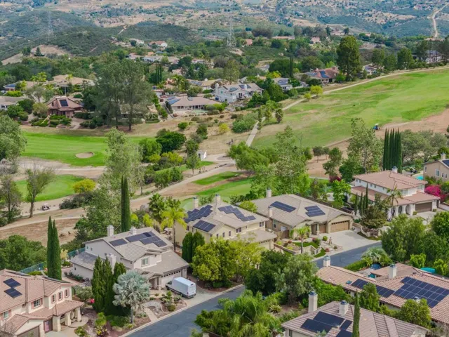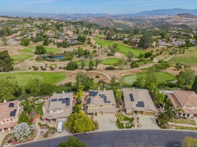 Owned Solar! Views! EV Ready! Stunning 5BR/3BA home in Hidden Meadows featuring soaring ceilings and panoramic golf course/hillside views. Modern layout includes a gourmet granite kitchen, entry-level bed/bath, entry-level bedroom, entry-level office and a spacious family room with custom built-ins. Huge primary suite offers a private fireplace and dual closets. 4 Low-maintenance yard, 220V EV charger, and fully owned solar. Enjoy resort-style living with community pools, tennis, golf, and clubhouse. Your North County retreat awaits!