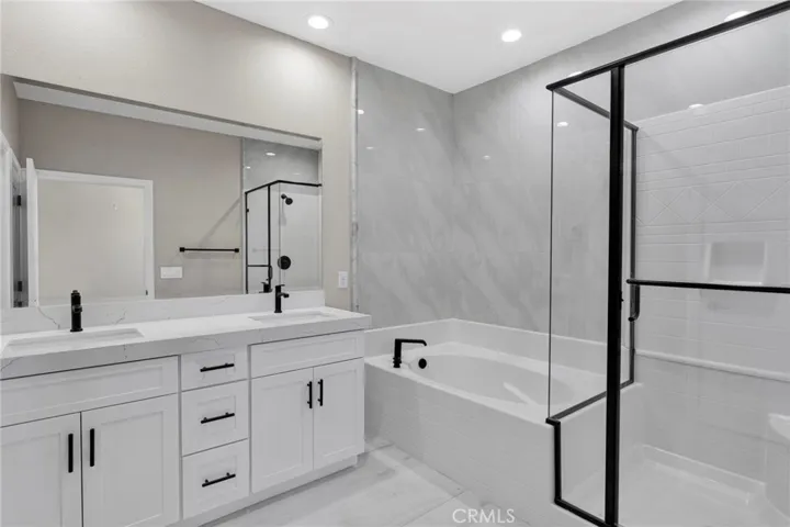 The generously sized bedrooms provide comfort and flexibility, while the primary suite offers a private retreat with a spacious layout and a beautifully appointed bathroom featuring dual vanities, a soaking tub, and a separate glass-enclosed shower.