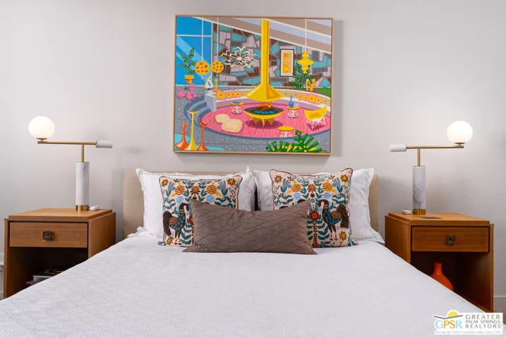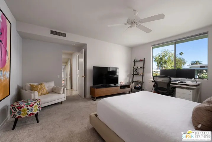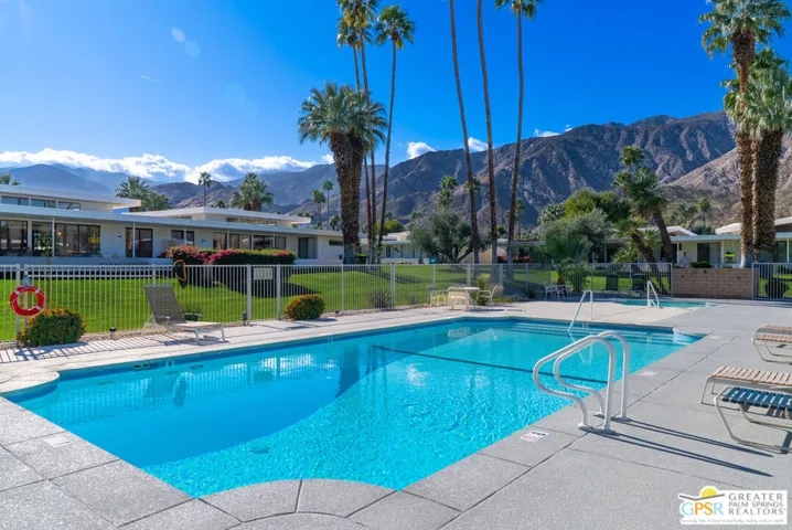 Discover iconic Palm Springs living in this striking Charles Du Bois residence, tucked at the end of a quiet cul-de-sac in sought-after Canyon Estates (on Fee Land)! Elevated to capture even more expansive valley and mountain views, the home’s unique orientation maximizes both beauty and efficiency – southern exposure powers the solar panels, while the north-facing patio stays shaded all day for effortless outdoor living. Classic desert modern design shines through with clerestory windows, clean lines, and walls of glass that blur indoor and outdoor spaces. The flexible layout offers two spacious suites plus a stylish den or office, while the open living area, complete with wet bar, flows seamlessly to the expansive patio – perfect for entertaining or simply taking in the view! All set within a resort-style community featuring golf, pools, spas, tennis, and more – just minutes from Indian Canyons and downtown Palm Springs.