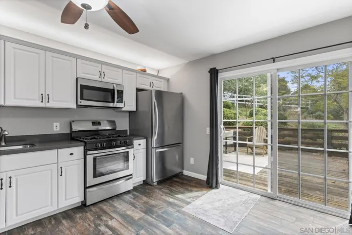 Tucked behind a gated entry, this storybook Fallbrook property unfolds across 1.62 acres, offering 5 bedrooms, 4.5 bathrooms, and 3,270 square feet of thoughtfully updated living space. Blending charm, character, and functionality, the home is designed for both everyday comfort and effortless entertaining. A long private drive sets a peaceful tone on arrival, while the fully fenced grounds provide space for animals, gardening, or simply enjoying the open setting. The main residence features an updated kitchen with white Café appliances, a walk-in pantry, and seamless flow into the living and dining areas. Warm wood flooring, a wood-burning stove, and expansive windows create a welcoming atmosphere throughout. The primary suite is conveniently located on the main level, with additional bedrooms upstairs offering flexibility for a variety of living needs. A detached guest house with its own kitchen provides a private retreat ideal for extended family, guests, or multi-generational living. The outdoor spaces are where this property truly shines. A charming covered porch, mature landscaping, and winding garden pathways create a storybook setting, while the property is designed for entertaining with an infinity edge pool, spa, outdoor kitchen, and multiple seating areas. Decks, patios, and garden spaces offer peaceful places to relax and take in the surroundings. Mountain views, RV parking, and versatile outdoor space complete this unique offering, combining charm, privacy, and lifestyle in a highly desirable Fallbrook location.
