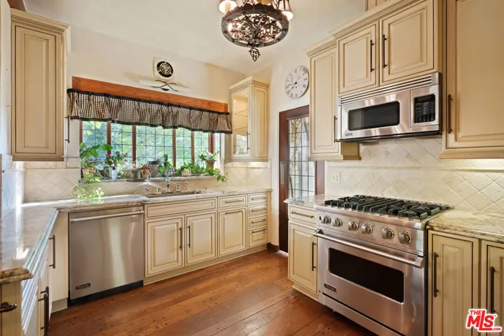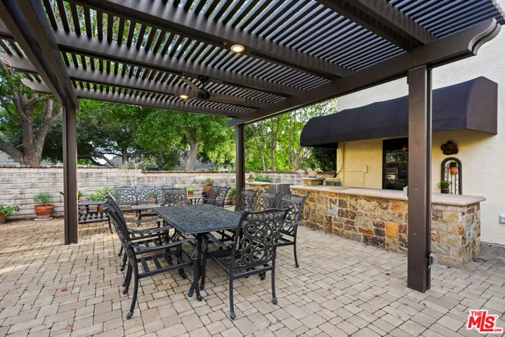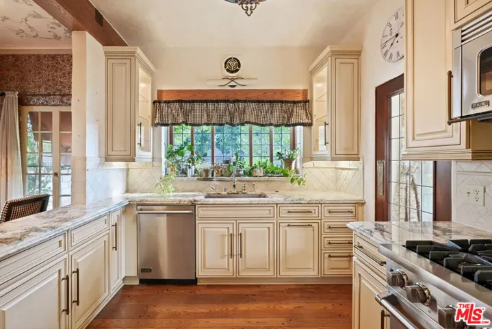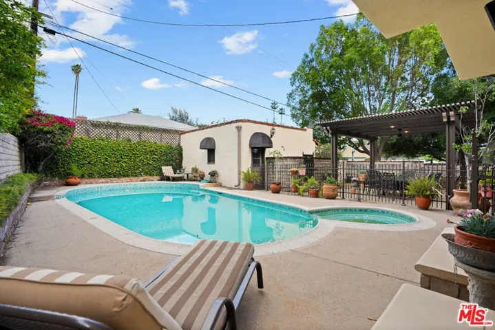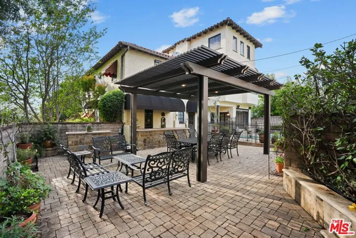 Set within the tree-lined streets of highly sought after Rossmoyne, this 1920s Spanish home sits on a prominent corner lot, surrounded by mature landscaping and one of Glendale’s most established residential settings. With approximately 3,300 square feet, the home offers a scale that is uncommon for the neighborhood, with notably expansive rooms throughout. The main level is anchored by a grand living room, where an original fireplace and arched front window bring in natural light and reinforce the scale of the space. Just beyond, a separate music room detailed with a decorative plaster molding and leaded glass doors that connect it to the surrounding rooms. The updated kitchen with Wolf range and Viking dishwasher includes custom cabinetry, stone countertops, and a window over the sink, with an attached breakfast area and a formal dining room sized for large scale dinner parties A dedicated office provides a separate workspace. A den-style family room offers an additional area for gathering. A large laundry room adds further flexibility and utility. Upstairs, three bedrooms are arranged along a wide central hallway. Each room is substantial in scale, with proportions that are rarely found in homes of this era. One bedroom opens to a balcony overlooking the neighborhood, while the primary suite includes a spacious bedroom, a luxuriously sized closet, that leads to the en-suite bathroom. The loft-like third level features exposed beams, wood ceilings, a sink and windows on multiple sides that bring in consistent natural light, along with sweeping views of the city. The open layout lends itself well to a studio, office, fourth bedroom or additional living space. The backyard is centered around a covered pergola with space for dining and gathering, alongside a built-in outdoor kitchenette. The pool and spa are set within a private, well-composed setting, offering an ideal place to enjoy Glendale’s warm, sunny climate throughout the year. A home defined by its scale, architectural character, and its setting within Rossmoyne, one of Glendale’s most coveted and historic neighborhoods.